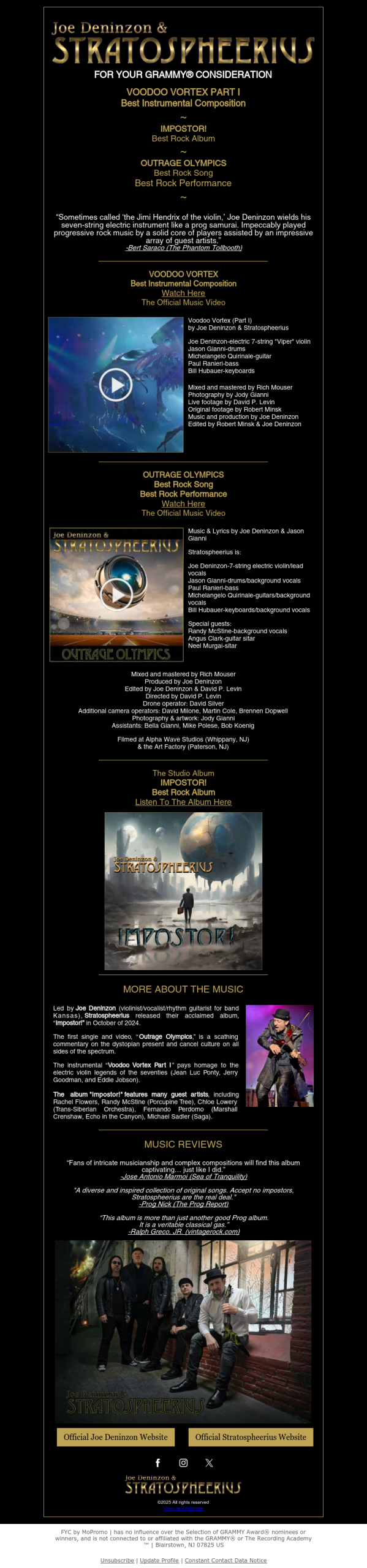 For Your Grammy Consideration: Music from Joe Deninzon & Stratospheerius “Impostor!”
